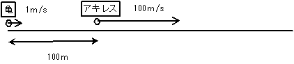 進むから、100分後にはアキレスに到達する。ここまでは 何の不思議もない。
