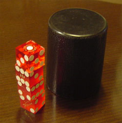 今度はカップが円筒形だし、ダイスは積み上がりやすい形をしています。