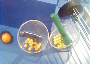 金属のボール と 両端に強力な磁石のついたスティック状のパーツを