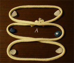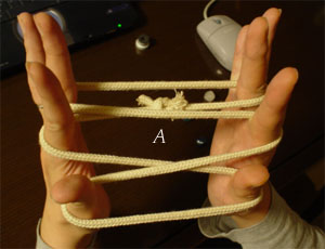 だから、下図で ひものかかった6本の指をすべてAで示した部分にいれて