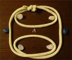左右に3個ずつある石が指を示していて、ひもが指にどのように