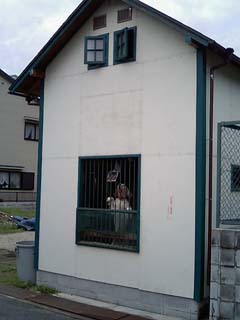 どうもこの犬君のためだけの一軒家のようです。 おおきい犬小屋!!! (05/08/23) |