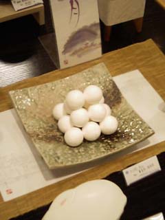 小学生の頃から、お月見のたびに、だんごをどう並べるか悩みました。 全部で15個を並べるのですが、美しい規則的な積み上げ方で 計15個となる方法って なかなかないのです。 左は大丸デパートでの 展示品です。なるほどね。 #14個ならきれいに並ぶのに、、、と思ったことありませんか? (05/08/28) |