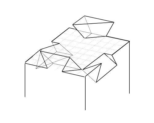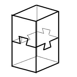 つぎの図は 左手前の出っぱりと、右奥の出っぱりを