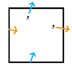 世界全体が正方形で、正方形の上辺からはみでると 下辺から、