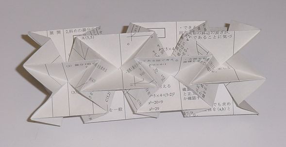 この折り方を すると自然に 丸まってしまって 筒状になった。