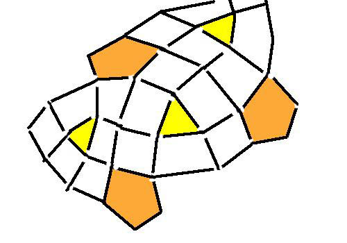 つまり 今回のひもの通り方を図にすると つぎのようになります。(一部を正則図で表す)