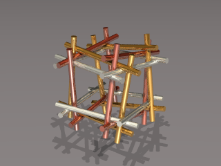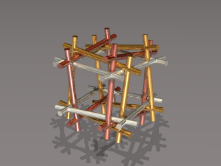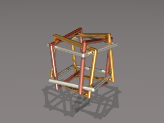 ここではもとの立方体を白で、拡大した各面の枠を金属で表しています。