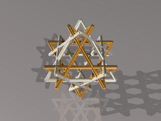 まず、正8面体の各面を拡大します。(例によって、拡大した面の枠を金属で表現しています。)