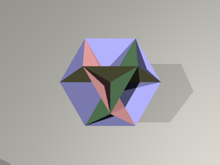 ところで、正8面体は正4面体から辺の中点まで角を落とすことでも、得られます。