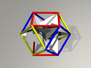 立方8面体の辺をつなぐと中心を通る4枚の正6角形が得られます。