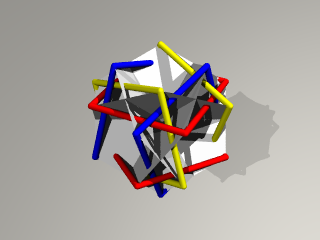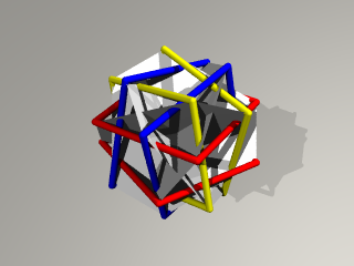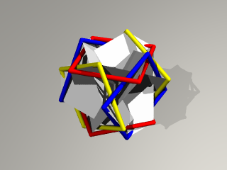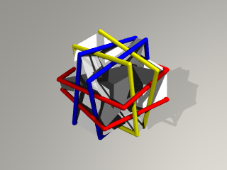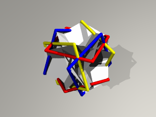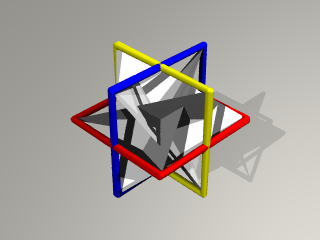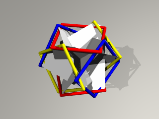 3枚の正方形の辺が正8面体を形作り、