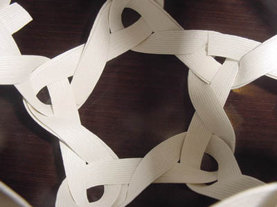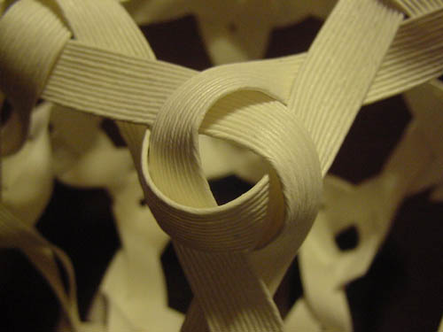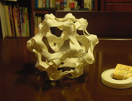 斜めに編む多面体:切隅十二面体」の模型を