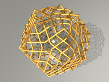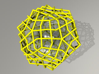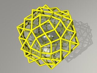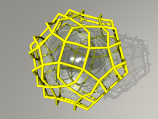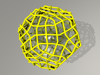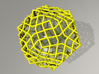 ![]() P*2+2i= P*1+iP2= P*2P1+iなので 菱形30面体の辺の部分に四角形をはさんだモノ、 また、凧型60面体のamboとも考えられる。 |
