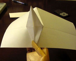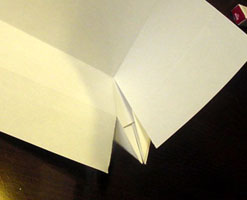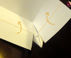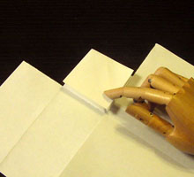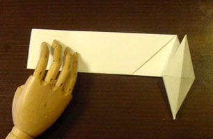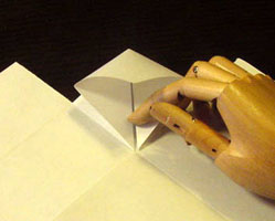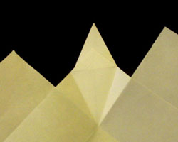 鶴の基本形をつくるために 図のように3箇所を折り、折り目をつけて、 |