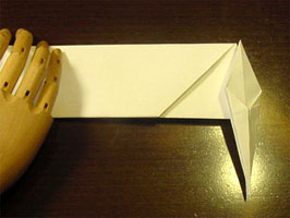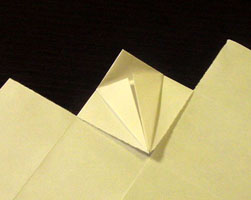 内側に折り返したところを 写真のようにあわせて 平らになるように折ります。 |