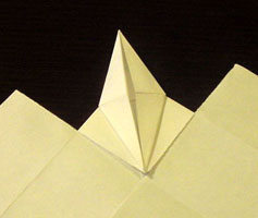 広げて 鶴の基本形を作るのですが、 鶴以外の部分が ついてくるので 図のようになります。 |