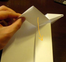 上にひろげて、折りたたんで鶴の基本形をつくります。 |