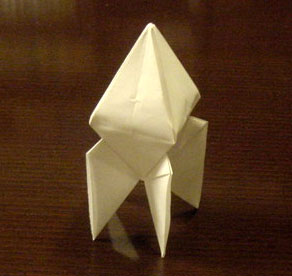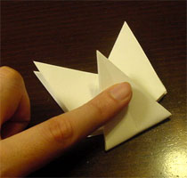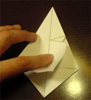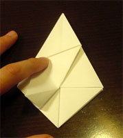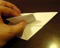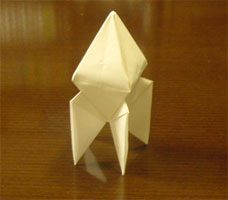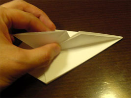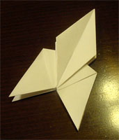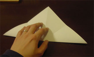 菱形の胴体部分を半分に軽く折って 折り目をつけて、 |