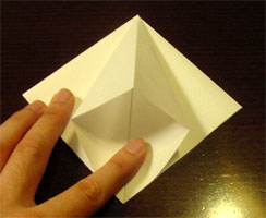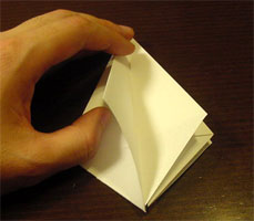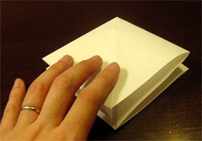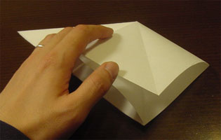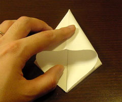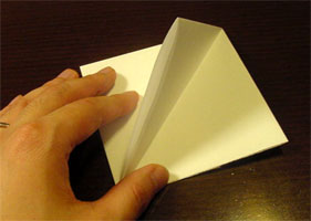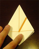まず正方形の紙を 三角形になるように半分に折ります。 |