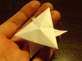 正三角形の紙で 作ります。作り方は 写真をみれば分かると思いますので