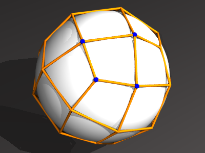 各頂点を中心とする球で、隣接する頂点については 対応する球が接する
