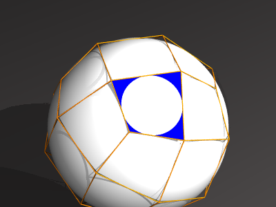 横から見るとこんな感じ。辺が球面に接する点で この断面の円は辺に接しています。