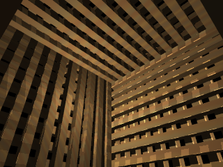 下のCGは上記の左の赤い方の形をもう少し対称性が高く組んだらこうなるという形。