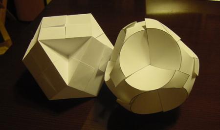 球面は曲率が正なので、厳密には曲率0の紙からは構成できないはずです。