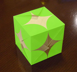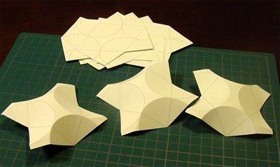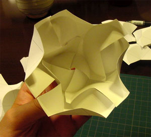 このパーツを12枚用意して、うまく組むと最初の写真の立体になるというわけ。