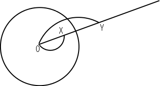 次の図のように円Oの中心から伸びる半直線上の点X,Yが