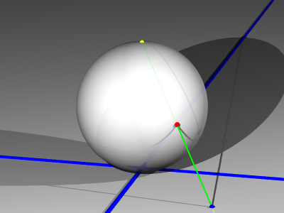 球面上の南極と反対側の点を北極(図の黄色い点)と呼ぶことにしましょう。