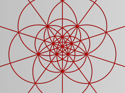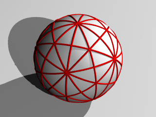 この模様は15個の大円(球面の中心を通る平面で球面を切った時に出来る断面)で出来ています。