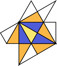 それらの三角形をさらに辺でパタンと裏返すと今度はおもての三角形が増えます。(オレンジ色の三角形)