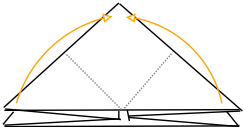 さて、上図のオレンジの矢印の折り方でぴったり重なるためには、