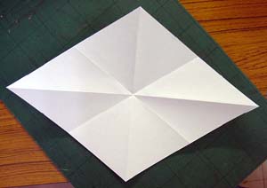 まず、菱形の用紙を用意して、上図のように折り目をつけます。