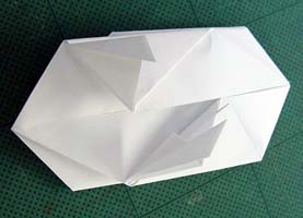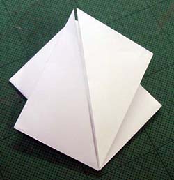 折り目に沿って折ると、自然とこのように基本型らしき形ができあがります。
