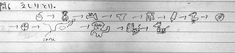 問6 問5の問いが「よるねるこねこ」ではダメな理由の証明。 まず、問いにあるように「ひ」である必要性は問題を意味のある言葉にするためである。 しかし、これでは「ひ」でなくても意味のある言葉にすることはできる。 この証明では「よ」を使うことを考える。 しかし、こういった問題をあてずっぽうで解く生徒がいる可能性を考慮すれば、 「よ」から正答である「4」を連想させてしまうために、「よるねるこねこ」より 「ひるねるこねこ」の方がふさわしい。よって、「夜寝るこねこ」は問題に使用されない。 | ||||||||||||