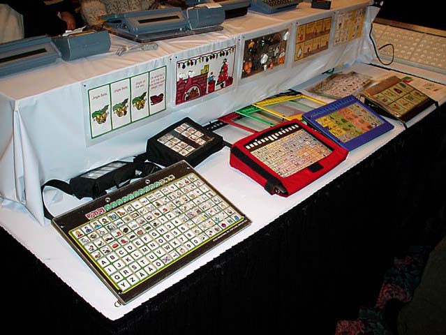 例えていえば、鉛筆やはさみ、食器、あるいはスイッチなど日常生活のために特別に設計された品物は、すべてテクノロジーの産物であるが、こうしたローテクは、それでも生徒の自立生活へと導くのに欠かせないものである。音声でのコミュニケーションが困難な生徒のために、介助者や教師が自由に単文を録音しておいて、生徒がシンボルのついたキーボードを押すと発声し、意志を伝達できるコミュニケーションエイドも普及している。