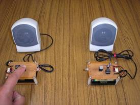 予算の限られた教育の現場では,教材にかかるコストが非常に重要になります.また,授業時間数や先生方の忙しさを考えると,製作および操作が簡単なものでなければ使用してもらえません.当研究室では,教育系大学院の電気・電子系研究室という立場から,教育現場で実際に使ってもらえる簡易・安価かつ高性能な電子回路装置(教材・教具)を開発することをめざし,研究を進めています. ※ここで紹介しました装置の詳細(回路図,プログラムなど)についてお知りになりたい方は,遠慮なく担当教員(小山)までお問い合わせください.授業などでのご利用に対してはできる限りサポートいたします.連絡先については教員の紹介のページをご覧ください. ※授業や研修,イベントなどで使用するために製作した教材・教具を教材あれこれのページで紹介しています。よろしければこちらもご覧ください。 1.光通信の教材・教具に関する研究 下の写真は,本研究室で開発しました双方向光通信(可視光通信)で会話をする実験装置です.1個のLEDを送信時は発光素子として,また受信時は受光素子として用いており,送受信は押しボタンスイッチで切り替えるようになっています.1個のLEDで通信しているため,光空間通信だけでなく,光ファイバーや鏡を使った実験も容易にできます,スピーカーは100円ショップで買ったもので,送信時にはマイクになります.送受信時とも,増幅は1個のIC(LM386)で行っています.LM386は大変ポピュラーなオーディオアンプで,通販サイトで1個50円〜100円程度で容易に入手できます.1セットあたりの部品代はトータルで1,000円かかりません. ボタンを押すと送信機,離すと受信機になります. プリント基板も作りました. (ユニバーサル基板を使用した装置) また,プッシュプル方式を用いた,エネルギー変換や電子回路(B級増幅回路)の学習にも役立つ光通信実験装置の開発も進めています. 2.LEDの新たな応用に関する研究