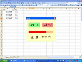 USB-IOを用いたデジタル温度計 温度測定中の画面
