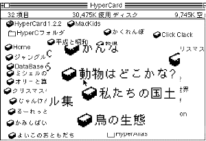 ここ数年、今までヒューマンインターフェイスに無頓着と思われるコンピュータを使ってきたユーザー の中に、ようやく本当に自分の哲学と仕事の質を理解し、自分の方向性を全面的に支援してくれるよう なコンピュータをみつける人々が急速に増えてきました。障害者も例外ではありません。自閉児といわ れる子供も何層にもネストしたフォルダをダブルクリックによって、いとも簡単に開いて遊んでいる報 告があります。確かに「Human Interface Guidelines:The Apple Desktop Interface」には「比喩 の使用」とか「操作の直観性」、「一貫性」など基本的な10の原則が解説はされてはいます。アラン・ ケイが次のようなことを言っているのは興味深いことです。「Macintoshは批判に値するインターフェ イスを有している。」彼の発言の意図は、批判しようがないインターフェイスらしき機能がコンピュー タに多いということかもしれません。あるいは、Macintoshのインターフェイスに決して満足してはい けないということかもしれません。アラン・ケイならずとも多くのユーザーには、なるほどとうなずけ るような指摘であります。みなさんからのご意見・提案